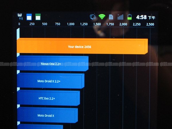 ▲ ZTE Light Tab 2 配備 Qualcomm MSM8255 1.4GHz CPU,在Quadrant Benchmark 錄得 2456分,表現已經唔錯。