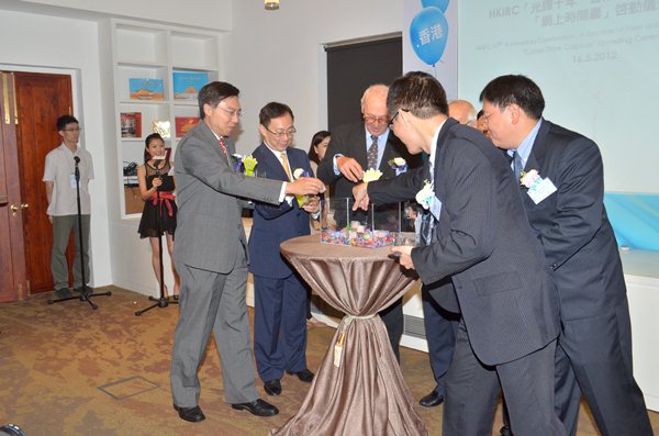 慶典上,HKIRC主席施德論 (John Estmond Strickland) 先生,GBS,JP及行政總裁謝達安先生連同政府資訊科技總監賴錫璋先生,BBS,JP及多位主禮嘉賓包括HKIRC創辦人之一及董事于善基先生,MH、東泰集團主席李君豪先生、VeriFi (Hong Kong) Limited主席黃平達先生,以及香港賽馬會資訊科技事務執行總監李惠光先生攜手為十周年「網上時間囊」網站主持揭幕儀式。