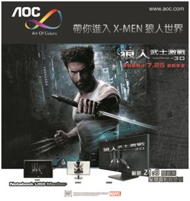 第二擊活動呈獻「AOC激賞X-MEN戲票及禮品」,由2013年7月18日起至8月1日期間,凡購買AOC指定系列電腦顯示屏或IDTV,即可獲得AOC x《狼人:武士激戰》3D電影戲票或電影珍藏版禮品乙份,請您欣賞期待已久的夏日鉅獻!禮品數量有限,先到先得,送完即止!
