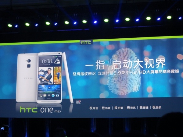 北京現場直擊!#HTC新品發布會#全球首發#One Max#【@Phone雜誌 /@TwitterNewsAgency推特通訊社 15日訊】HTC今日下午在北京全球首次發布全新手機。賣點「一指啟動大視界」,中國區總裁董俊良公布這款指模識别功能的全新旗艦智能手機10月底上市,支援4G LTE網絡。更多http://t.cn/GVgIe