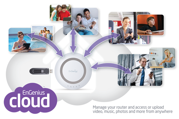 室內外無線網絡專家EnGenius Technologies Inc.熱賣的SoHo Cloud Router ESR雲端飛碟系列。在新的一年再添一員ESR600 N600 Dual Band 11n 2T2R Wireless Cloud Gigabit Router w/USB Port。 ESR600擁有4-Port Gigabit Switch+1*Gigabit Port,採用了高速雙頻無線制式 300M@5GHz + [email protected] ,使用4*內置隱藏式天線,配合Xtra Range™及Tx Power無線功率調節,增強無線覆蓋範圍及穩定性,同時避開無線訊號干擾。而且可透過Network Turbine boosts NAT 加速,同時提供4種VPN運作模式及多逹8個Multi-SSID。配合User Friendly的獨家EnShare多平台APP及DDNS,就算身處外地都可隨時管理分享您的USB port內的檔案,加造真正的私人雲端。強大的接收能力,私人雲端功能及醒目的飛碟外型,Engenius ESR600絕對能達到現今客戶對Router“一機多用”的需求。