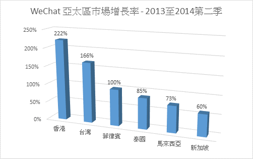 WeChat在2013至2014年第二季期間,亞太區用戶的升
